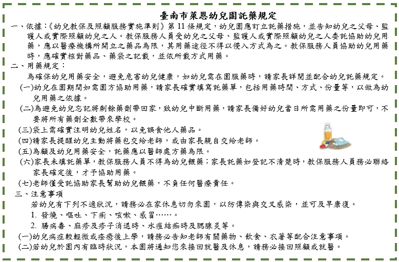 萊恩幼兒園-用藥安全、託藥規定及辦法~